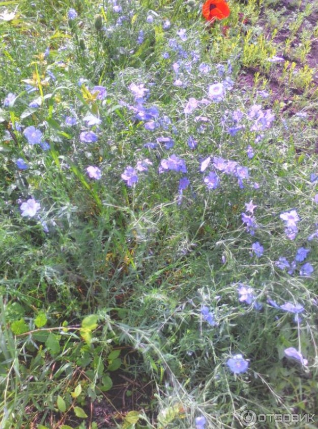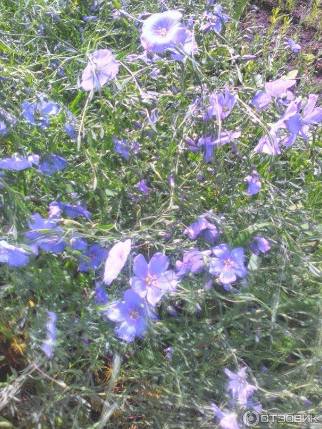 Какъв е нашият лен? Растението наистина покрива земята като килим, достигайки височина около петдесет сантиметра. Многобройни цветни стъбла се отварят в слънчев ден, пленявайки с нежни, ефирни сини венчелистчета. Диаметърът им е около три сантиметра. Опадат обилно, украсявайки земята с ярки, опадали петна.