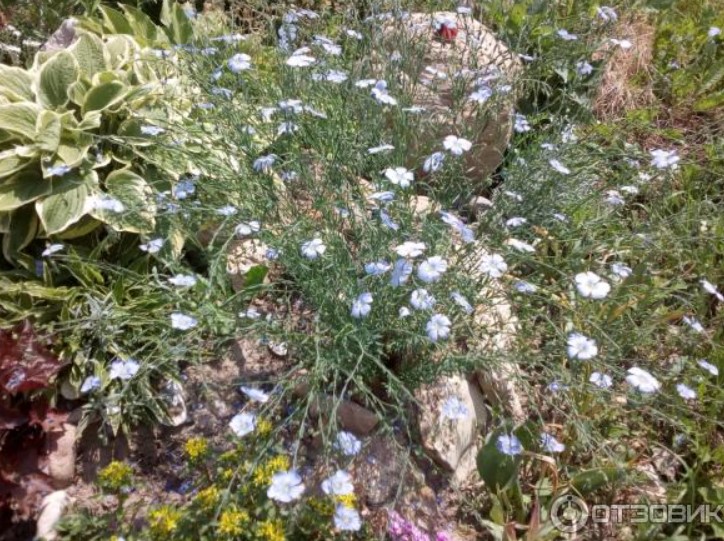 Е, година по-късно мога да споделя резултатите от друг вид семена от Agronika LLC =) Същата пролет любимата ми купи голямо разнообразие от семена за цветя, включително три вида лен: едроцветния бял "Bright Eyes", едроцветния червен "Rubrum" и многогодишния лен "Blue Carpet".Не забелязах и когато се прибрах, открих, че сините цветове цъфтят едва на втората година. Ще се съгласите, че ги искате тук и сега, а не година по-късно. Но нямаше друг избор, затова следвахме инструкциите и ги посехме директно в земята около 20 април. Възможно е да ги посеем и преди зимата, като разсад, но месец по-рано, през март или април.