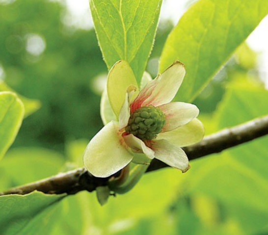 Пъпките приличат на цветове на магнолия. В началото на цъфтежа венчелистчетата са бели. Преди да окапят, те стават нежно розови. Цветовете са събрани в аксиларни съцветия. Дръжките са удължени, леко увиснали под тежестта на пъпките. Цъфтежът настъпва в средата на лятото.