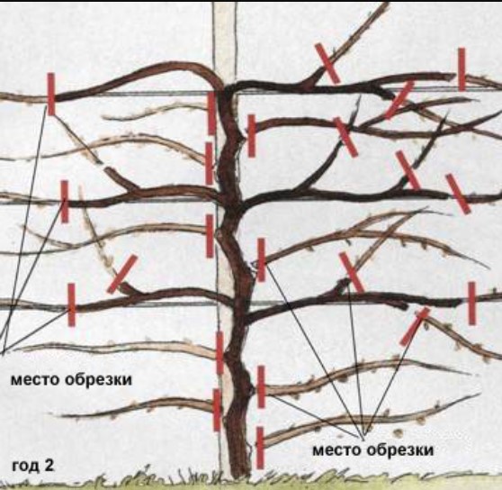 Когато растението достигне 15-18-годишна възраст, на лозата се оставят 4-5 силни издънки. Останалите се подрязват до точката на растеж.