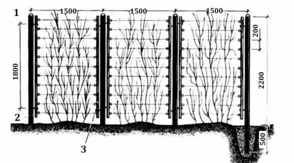 Между опорните стълбове се оставя 3-метрово разстояние и няколко реда тел се опъват хоризонтално. Първият ред се разполага на 0,5 метра над повърхността на земята. Следващите редове са разположени на разстояние 0,7-0,8 метра един от друг.