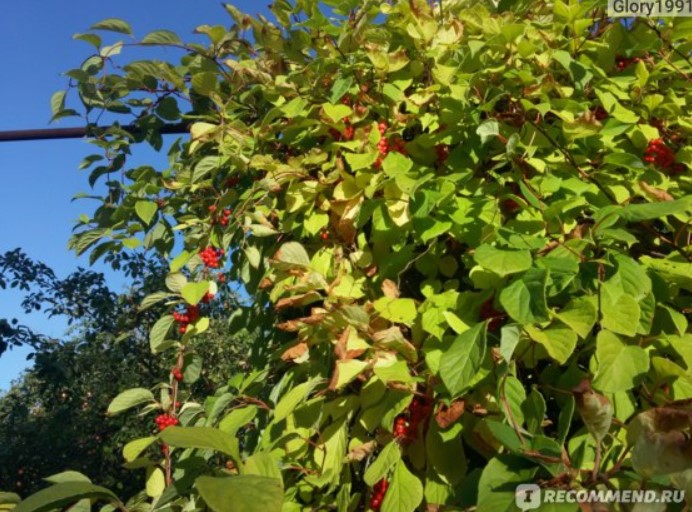 Веднъж отгледах това от семена - поръчах го. Расте на ЕДНО растение. Има както мъжки, така и женски цветове. Гроздовете дават по няколко зърна, рядко до десет. Както правилно беше отбелязано тук, опрашването е единствено от вятъра. Расте от южната страна на къщата. Почвата беше силно чакълеста. Спуснах няколко жици изпод покрива и храстът порасна там. Не го подрязвам всяка година - никога не ми се налага да го правя. Почвата е покрита с всякакви плевели, като дървесна трева, и аз плевя високите. Покрива почвата с лист. Храстът е голям, но събирам около литър плодове. Поръсвам ги със захар. По желание мога да отделя семената и сиропа. Използвам го при настинки, като средство за укрепване на имунитета.