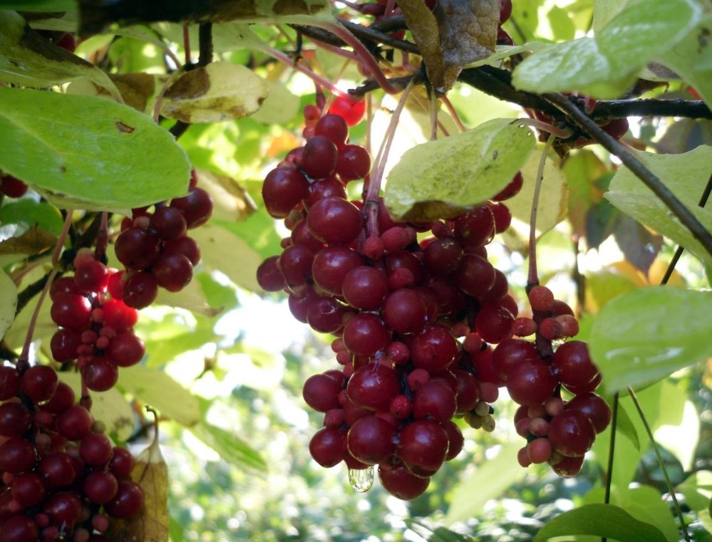 Растението дава червени плодове. Събрани са на гроздове, напомнящи грозде и касис. Кожицата е сладко-солена, тръпчива. Сокът е леко кисел и стипчив, а семената са леко горчиви.