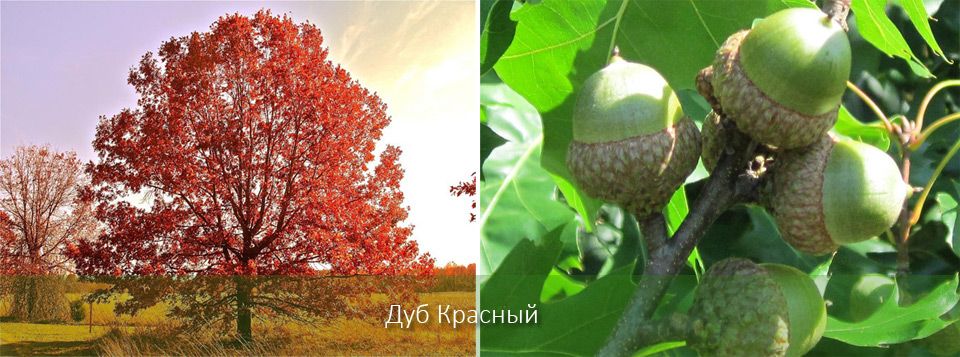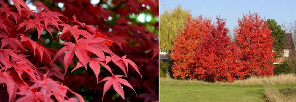 | Червено | Нискорастящо северноамериканско дърво (до 25 м), което предпочита слънчеви места с умерено влажна почва. Живее до 2000 години. Устойчиво е на болести и вредители. Има гъста, палатковидна корона. | След цъфтежа листата са червени, по-късно стават зелени. През есента са наситено кафяви или кафяви. |
