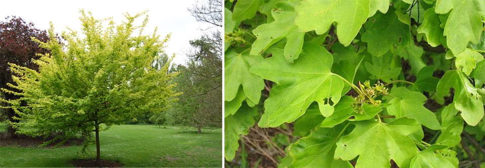 | Обикновен | Съцветията нямат декоративна стойност, но дървото може да се използва за озеленяване на паркове и булеварди. | Зелени, петолъчни и със сложна форма, те нямат време да пожълтяват през есента и бързо да опадат. |