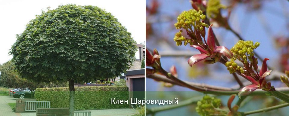 | Кълбовиден | Декоративен сорт клен, отгледан за украса на паркове, алеи и градински площи. Естествено сферичната му корона не изисква резитба. | Остри, петделни, лъскави. |