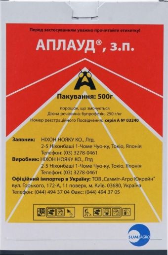 - Aplaud: инхибитор на синтеза на хитин. Пръскайте с разреждане от 10 g на 10 l.