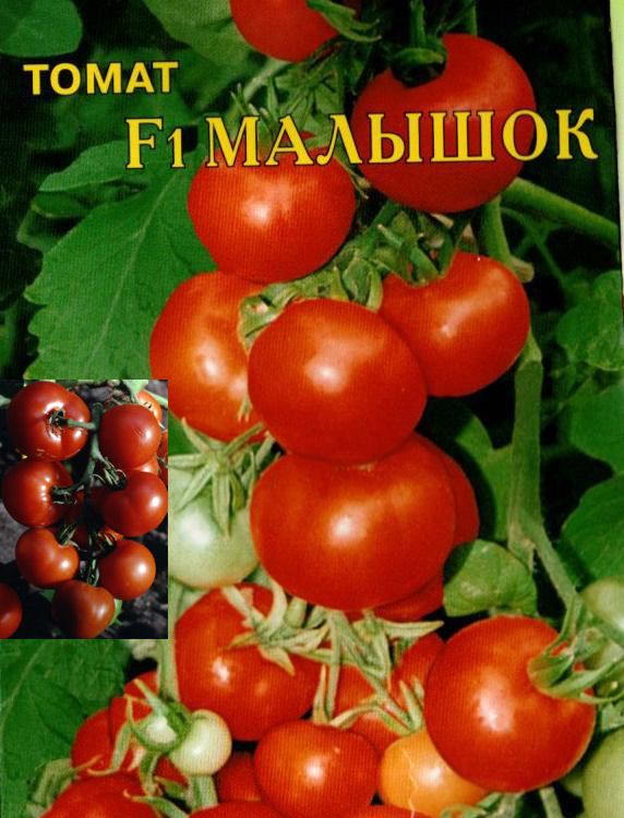 Ниски миниатюрни храсти с тъмнозелени листа дават до 7 средно големи червени домата.
