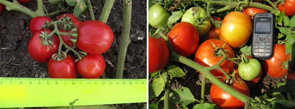 Отгледан от градинар-любител, този сорт се характеризира с едри и вкусни домати, в някои случаи тежащи до 1 кг.