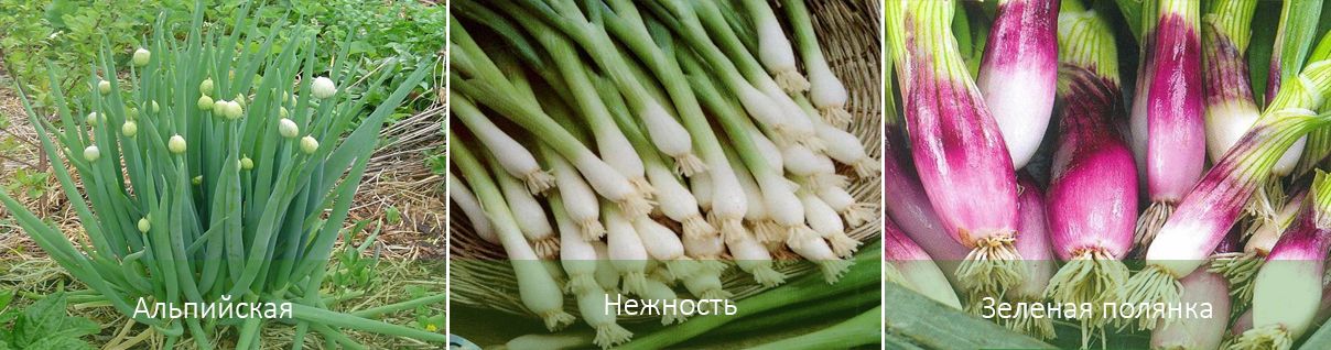 | Пикник | Устойчив на болести, перото е пикантно, леко остро. 50. | Отглежда се за приготвяне на основни ястия. |