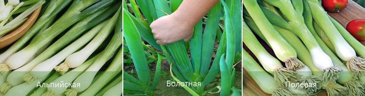 Селекционерите непрекъснато разработват технологично напреднали, продуктивни сортове с различни вкусове на перата. В Русия се култивират много сортове, а информация за най-популярните от тях, характеризиращи се с енергичен растеж и обилна листна маса, е включена в таблицата.