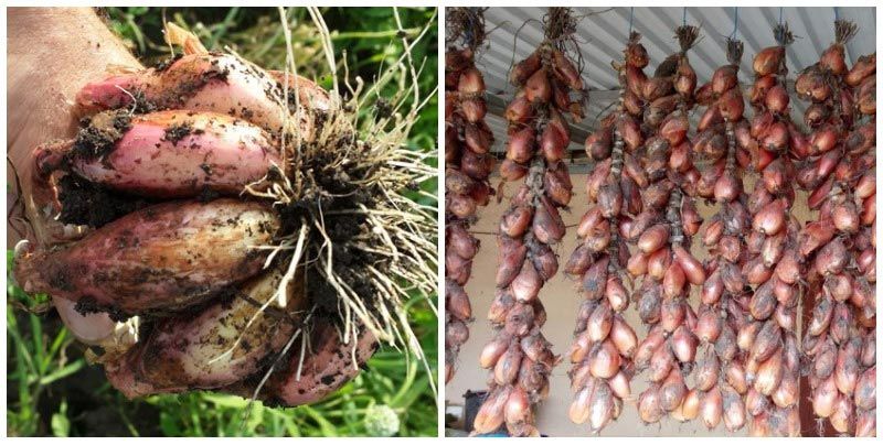 Прибирането на реколтата започва, след като шалотът стане жилав и първо леко пожълтее, преди да се разпадне. Прибирането на реколтата не трябва да започва преди това време, в противен случай шалотът няма да се съхранява добре и ще поникне преждевременно. Реколтата се събира рано сутрин в сух, слънчев ден и се суши старателно под навес. Луковиците се обелват и след това се сплитат на връзки.