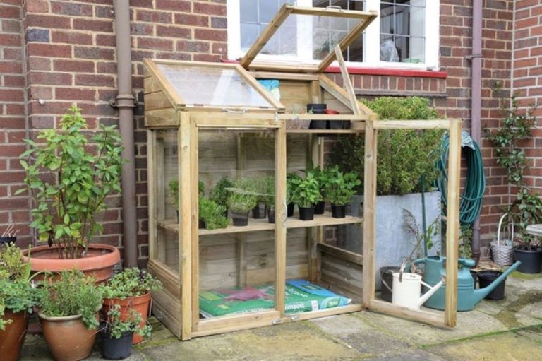 Стените са изработени от стъкло, полиетиленово фолио или поликарбонат, които са прикрепени към рамката. Тази мини оранжерия не може да се разглоби, след като бъде построена, така че преместването ѝ на друго място ще бъде трудно.