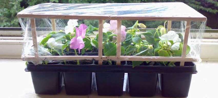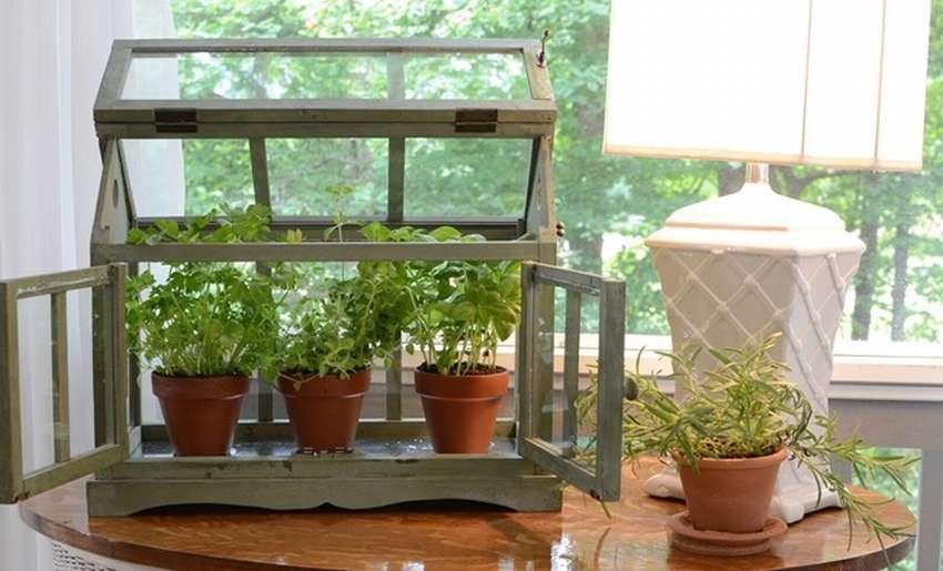 - Вътрешните оранжерии се поставят на закрито. Те могат да се използват за разсад и топлолюбиви стайни растения. Мини оранжерия на перваза на прозореца е отличен вариант.