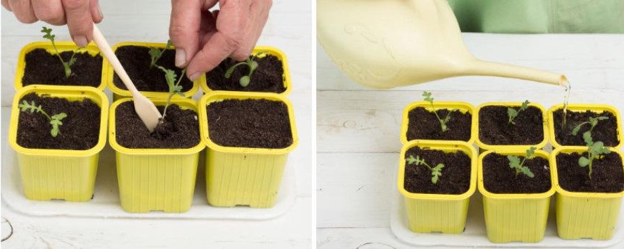 Семената се заравят леко в почвата и се поливат със спринцовка или пулверизатор, а контейнерът се покрива с пластмасово фолио. Мини-оранжерията трябва периодично да се проветрява, за да се предотврати образуването на конденз вътре. Важно е да се полива само след като почвата е изсъхнала, за да се предотврати преовлажняването ѝ, което може да доведе до гниене на семената, без те да покълнат.