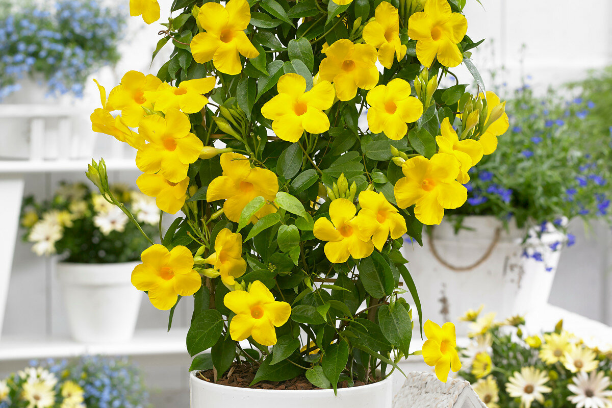Аламанда, с красивите си златисти цветове, често наричана „Златна тръба“, привлича вниманието с прекрасните си декоративни качества. Плътните ѝ зелени листа и великолепните цветове я правят предпочитан избор за интериора на дома или оранжерията. Тя може да добави специален тропически чар и уют на всяко пространство.