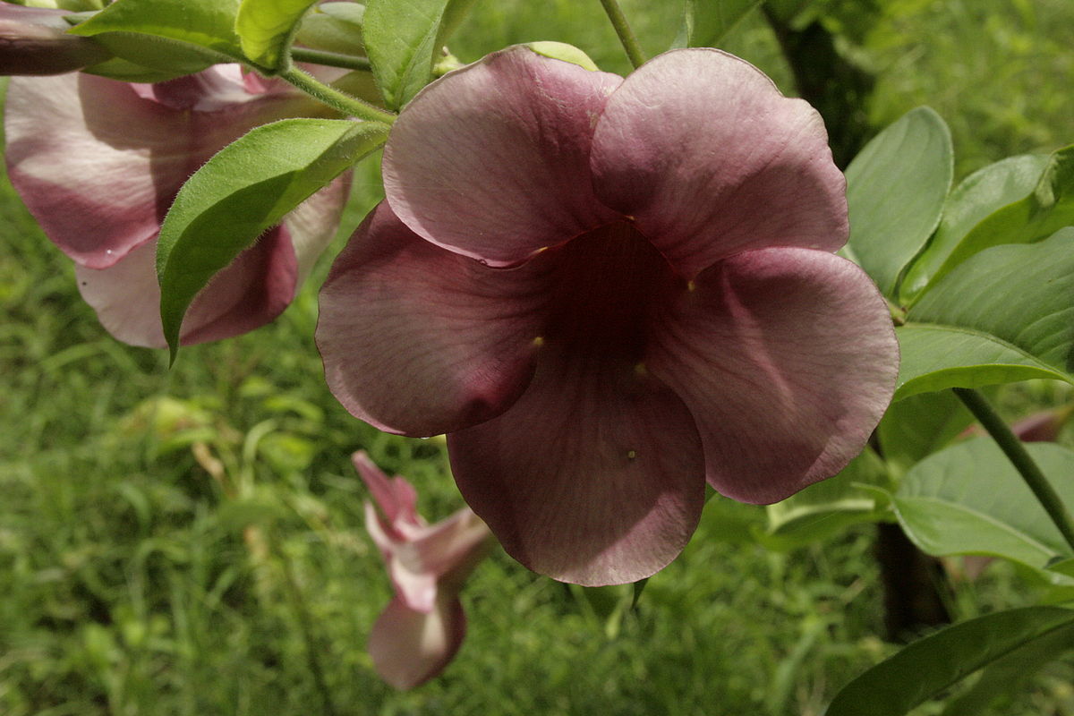 | Преглед | Това е вечнозелен храст или лоза с големи, изправени стъбла, които отделят млечен сок, когато са повредени. Листата са разположени последователно и са овални или елиптични. Цветовете са големи и ярки, с чашелистчета, отварящи се във фуниевиден отвор, и венчелистчета, образуващи пет венчелистчета. Цветът на цветята може да бъде жълт, оранжев, розов или червен. |