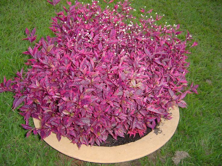 Този вечнозелен храст, известен като Alternanthera amoena, винаги радва окото с изящната си красота. Предпочита умерено топъл климат и обилно поливане. Вирее както в саксии, така и на открито.