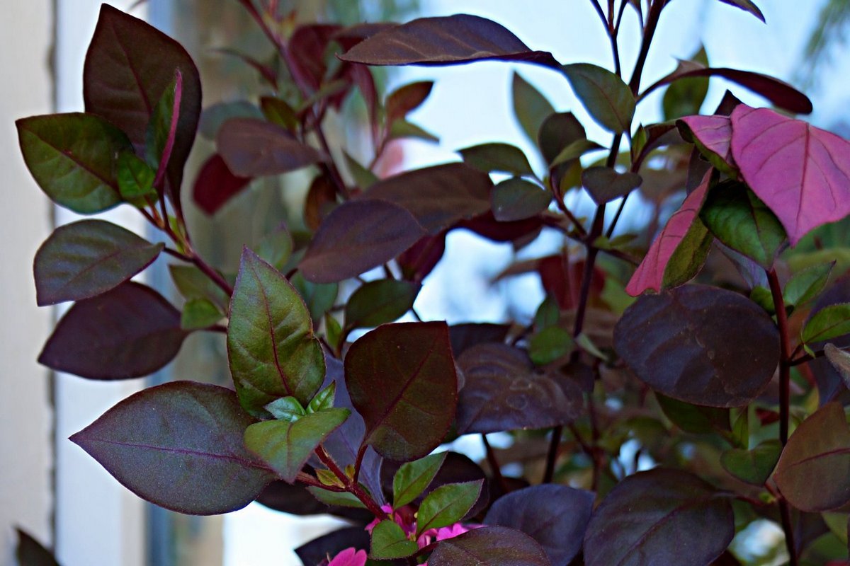 Привлича вниманието с дългите си стъбла и ярко оцветените си листа, които блестят от розово-червено до тъмно лилаво. 🌈