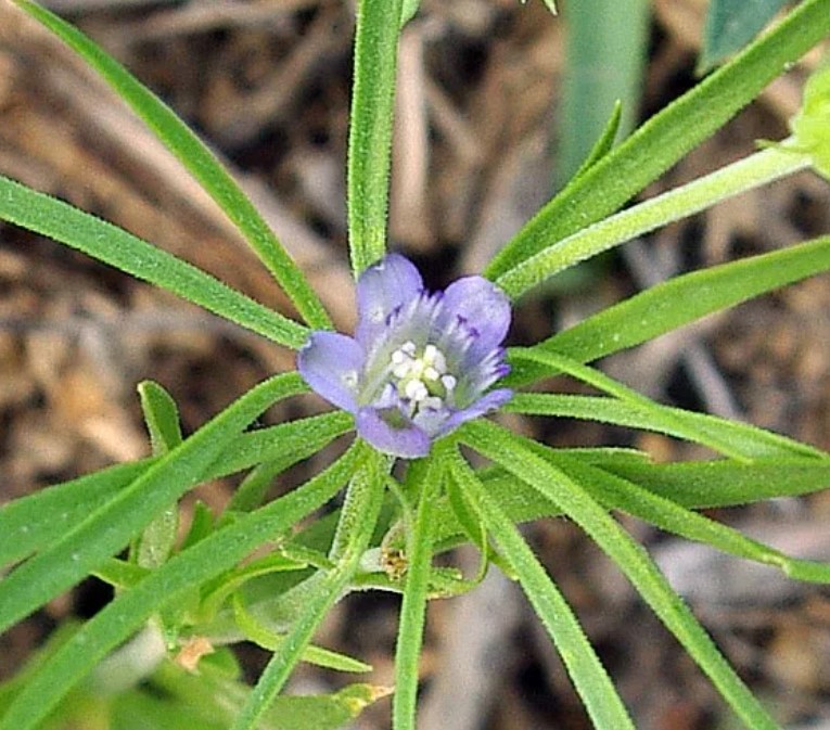 | Описание | Стъблото е просто и сравнително високо, с целокрайни долни листа и дланесто разчленени горни листа. Цветовете са синкави, с диаметър около 1 см. Плодовете са линейно-продълговати листчета с кафяви семена. |