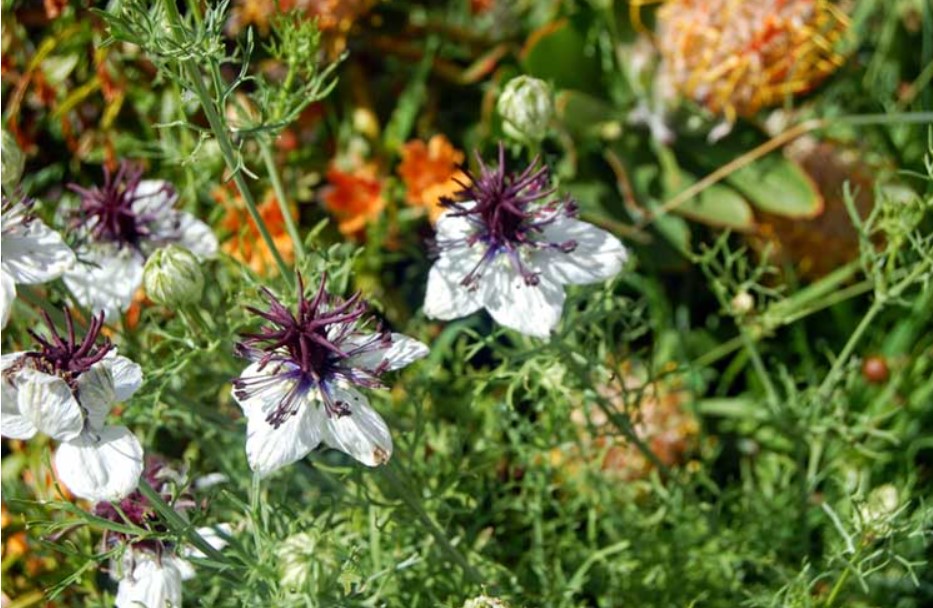Най-разпространеното растение за цветни лехи е Дамаската нигела, чиито цветове и листа създават силно декоративен и ефирен вид. Нигелата изглежда зашеметяващо, обрамчена от големи скали, камъни и каменни бордюри. Тя допълва цветни лехи с макове, метличини, теменужки, здравец, невен и иберис.