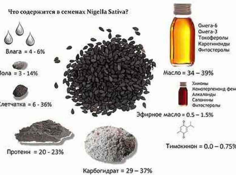 Семената съдържат 0,4-1,5% етерично масло и до 40% мастно масло.