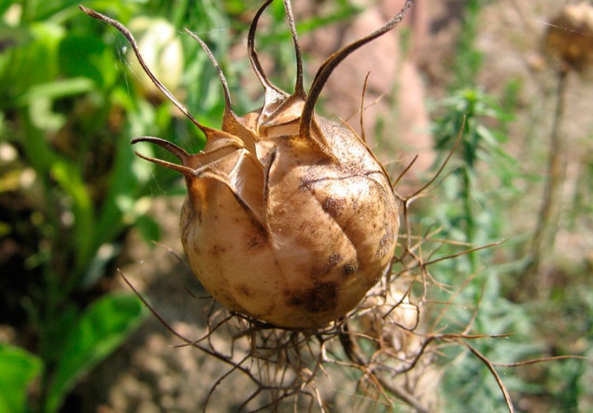 Узряването на семената обикновено настъпва през втората половина на август до началото на септември. Шушулките със семена се забелязват лесно: венчелистчетата окапват и на мястото на цвета се появяват семенни шушулки. Когато повече от половината шушулки са се образували върху всички нигели в цветната леха, те са готови за прибиране на реколтата. Стъблата се отрязват, връзват се на връзки и се поставят на сухо, добре проветриво място. Можете да увиете шушулките в марля и да окачите растенията с главата надолу - всеки градинар избира кой метод е най-удобен за него. След като шушулките изсъхнат, ги разклатете и поставете семената в платнени торбички или ги посейте непосредствено преди зимата за текущия сезон.