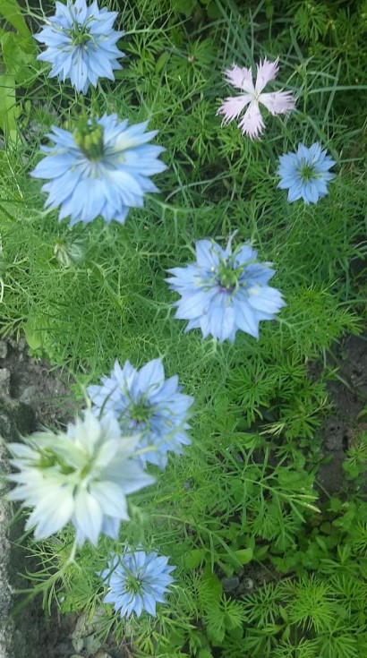 Здравейте на всички! Днес бих искала да ви разкажа повече за моите кралски цветни лехи, които ме радват с нежността си и се наричат „Чигела“. Наричат се още „нигела“, защото семената им са наистина черни, като лук. Запознах се с тези цветя отдавна. Считат се за едногодишни, но узряват и разпръскват семената си сами, а през пролетта поникват естествено, където си поискат. Нямам нищо против и те растат малко по малко във всеки ъгъл на стаята, а когато се комбинират с други цветя, изглеждат още по-красиви.