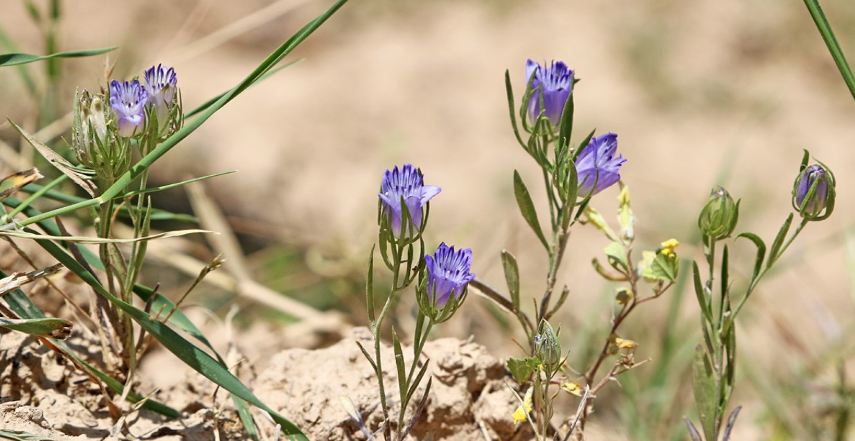 | Описание | Изправените стъбла варират от 10 до 40 см височина с обширни разклонения. Листата са линейни, дълги до 3 см. Цветовете са единични, с диаметър до 3 см, синкави или бели. Плодовете са едри, с форма на много листчета. Семената са туберкулозни, триъгълни и подобни на семената на лука. |