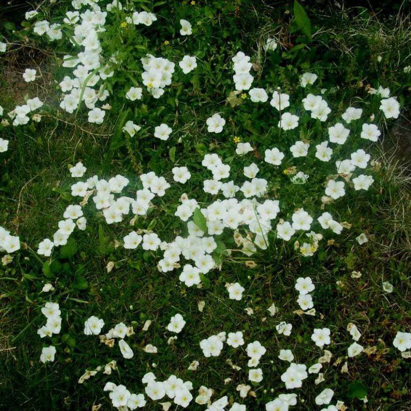 - Блестящ кристал – пълзящи издънки, дълги до 20 см. Цветове с форма на фуния, с диаметър до 2,5 см, бели с жълтеникав център.