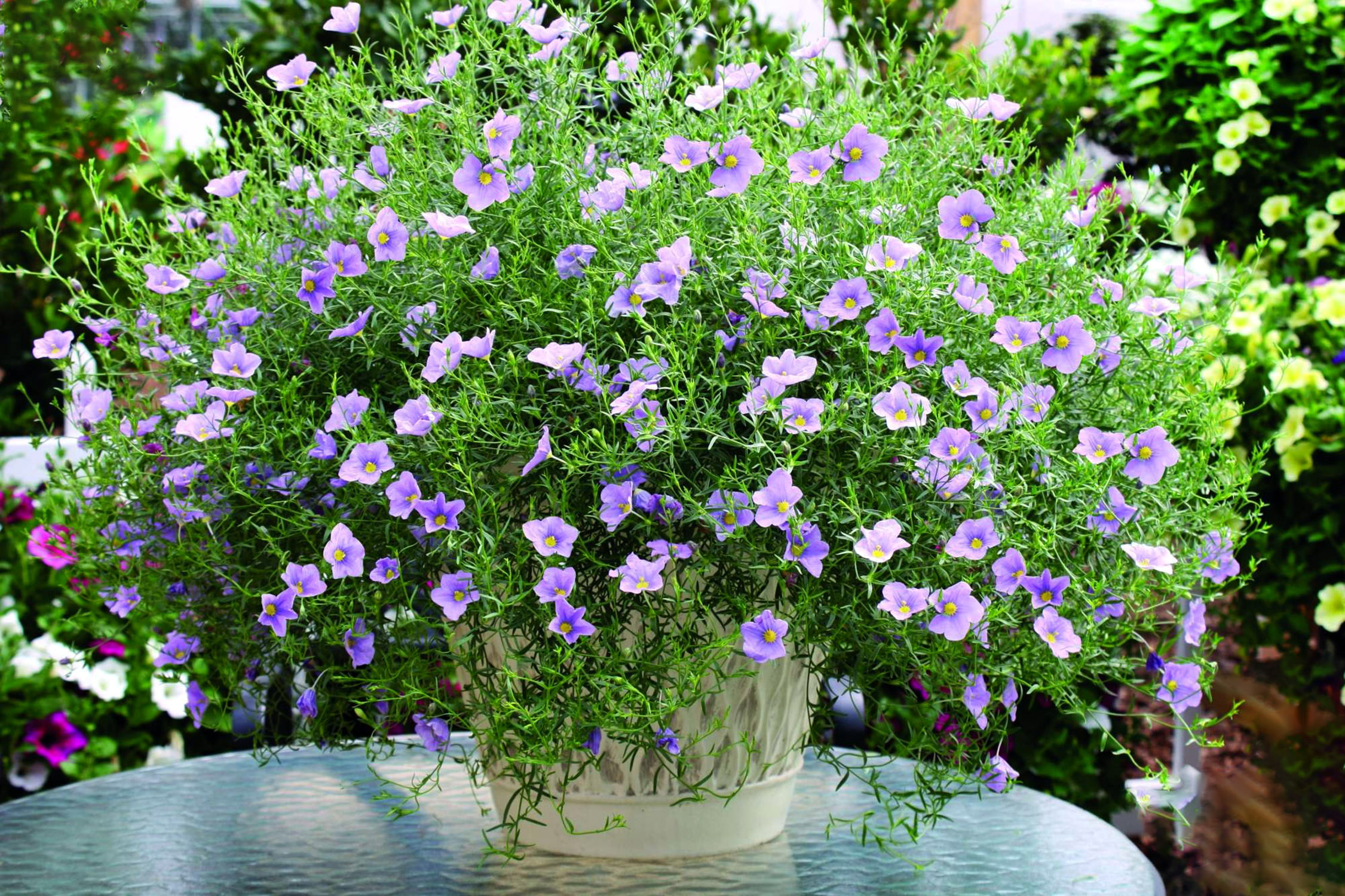 Сортовете с дълги стъбла могат да се поставят хоризонтално в цветна леха, създавайки ефект на цъфтящ килим. Те могат да се засаждат и в саксии и да се използват за украса на беседки или веранди. Разперените стъбла образуват красива корона, която се простира отвъд саксията като буен облак.