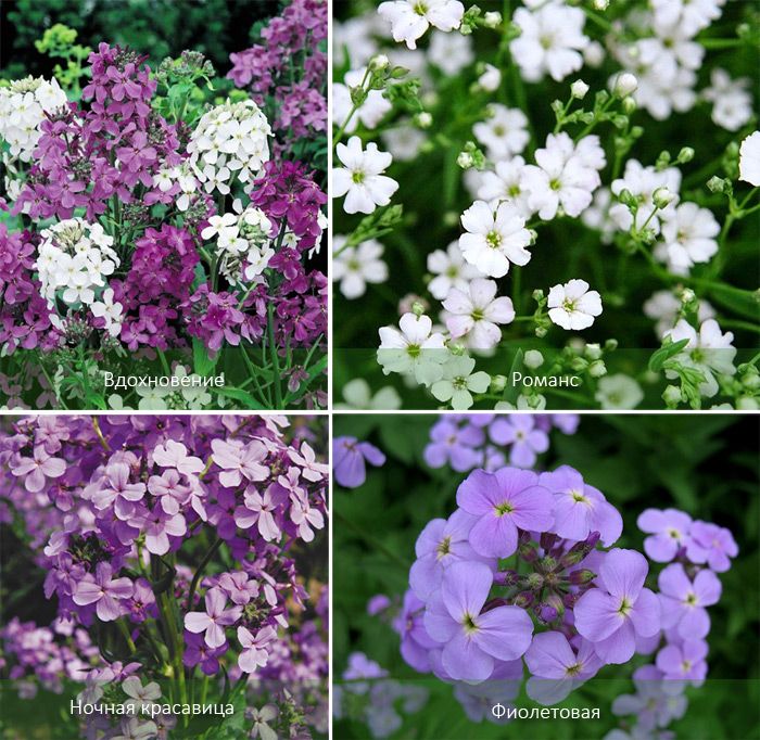 Популярните декоративни цветя имат приятен аромат и няколко имена: нощна теменужка, вечерна иглика на матрона.