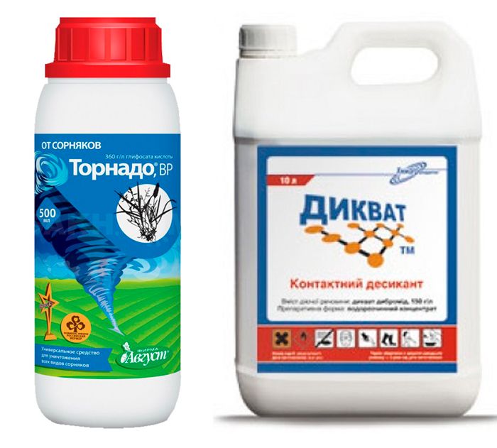 Тази категория включва продукти като Tornado и Diquat. Първият съдържа глифозат и се предлага в ампули с обем от 5 до 1000 мл. За да приготвите разтвора за борба с плевелите, следвайте инструкциите. Продуктът остава в почвата в продължение на 8 седмици.