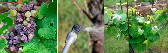 - Черно гниене. По листните остриета се появяват кремави петна. Ако не се лекува, лозето ще бъде напълно унищожено;