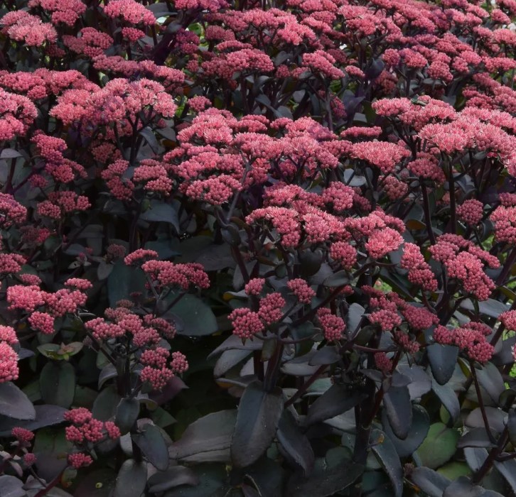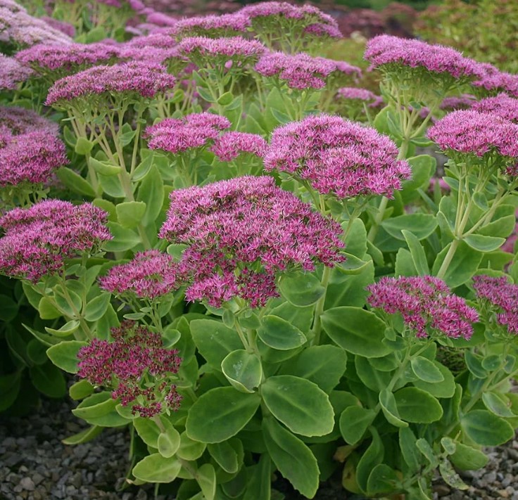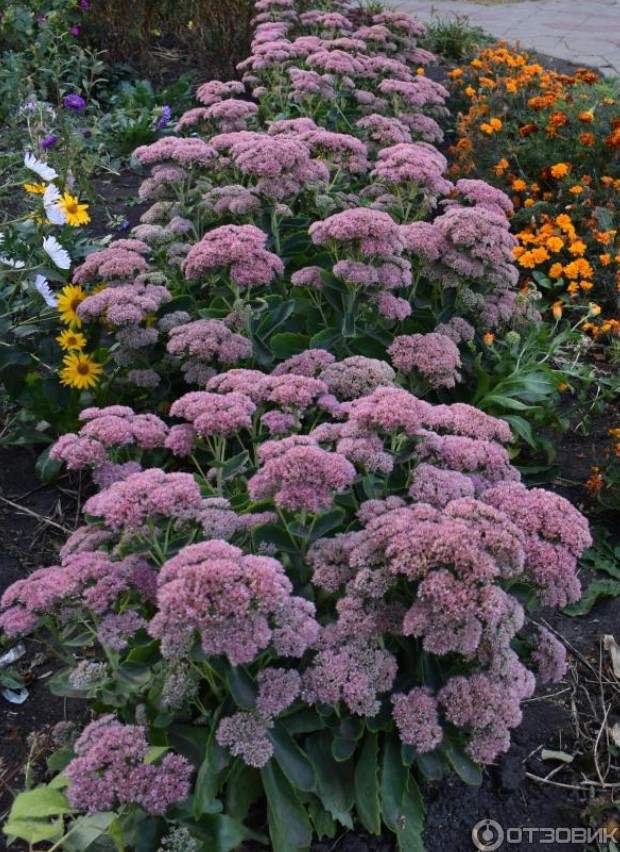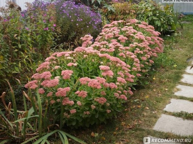 Седумът е особено красив през есента, когато съцветията, образувани през лятото, се отварят и храстът е покрит с розова шапка от цветове.
