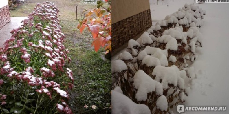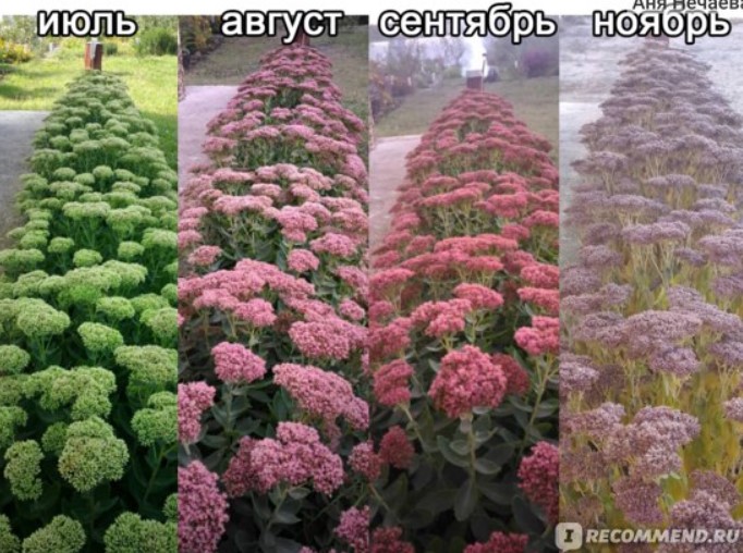 Седумът ще цъфти дълго време, чак до силните слани. Дори след като цветната леха е подготвена за зимата и нищо не е останало, седумът продължава да радва с красивите си розови сенници. Дори първите леки слани не са засегнати.