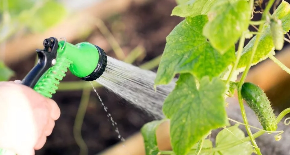Краставиците са влаголюбива култура. Оставете водата да се утаи преди поливане и използвайте пулверизатор, за да пръскате зелените части на растението по време на напояване. Оптималното ниво на влажност в оранжерия е 85%, а температурата на въздуха е 22–28°C.