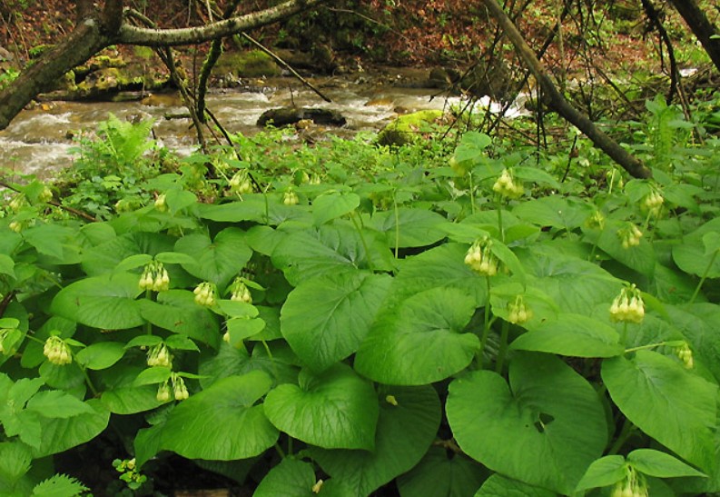| Растението достига височина до 60 см, с листа с дължина до 25 см и матово зелен цвят. Листните остриета са със сърцевидна или овална форма. Цветовете са бели, многобройни и събрани в увиснали съцветия. | Разпространен в цяла Русия, той се отличава с повишена устойчивост на замръзване. | Чрез семена или вегетативно. | Декорация на цветни лехи със строг контрол на разпространението. |