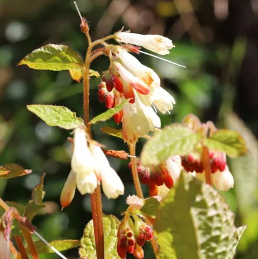 | Хидкот Пинк | Тревисто многогодишно растение с височина до 30 см с едри, опушени, удължено-яйцевидни листа. Цветовете са тръбести, бели и розови. | Май-юни |