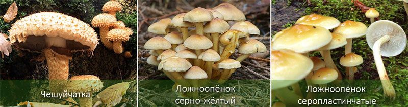 Неопитните гъбари могат да берат фалшиви медени гъби с цвят на сяра, сиви плочи или червено-кафяви вместо ядливи. В последните два случая няма да се случи нищо сериозно. Тези гъби са условно годни за консумация, но е най-добре да ги избягвате.