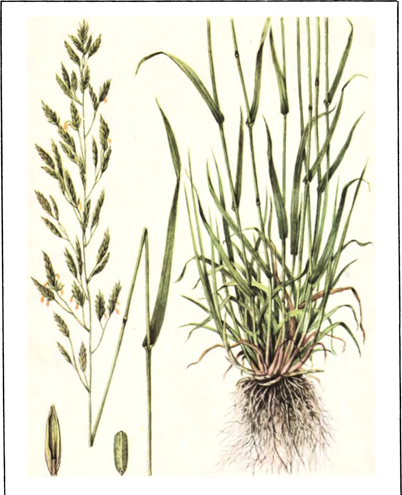 Образува рехав тревен храст: стъблата са тънки, триъгълни на върха. Листните остриета са четинести, удължени, тесни и извити. Съцветията са събрани в рехави, увиснали, продълговати метлици. Ушите са с нежно изумрудено зелен цвят.