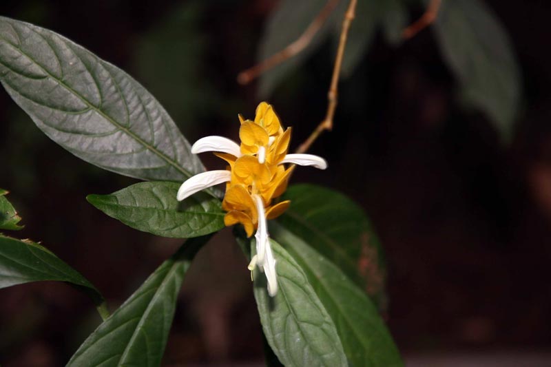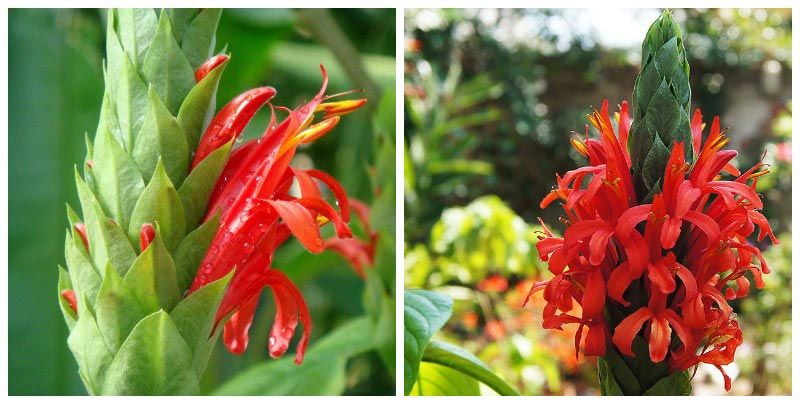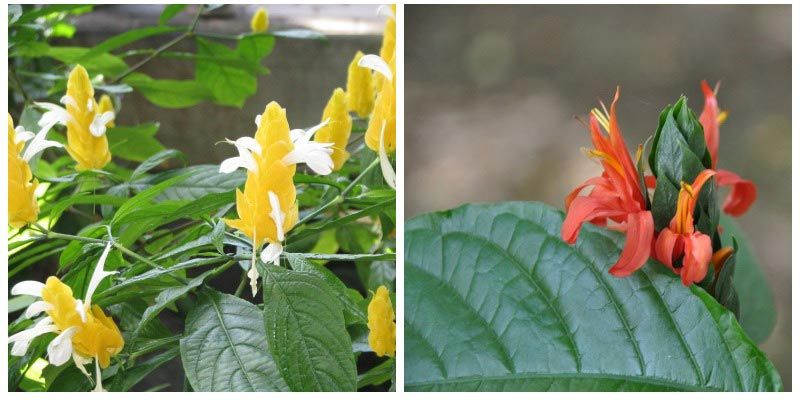 | Червен пахистахис (Pachystachyscoccinea) | Разпростиращ се храст, висок около 2 м. | С удължени, дълги, тъмнозелени листа (до 40 см), понякога с бордо ивици. | В средата на пролетта се появяват здрави шипове от люспи, последвани от червени, удължени венчелистчета с четири жълти тичинки в центъра. Три венчелистчета се извиват надолу, а едното се изправя като платно на вятъра. Може би заради това цвете червеният пахистахис е наречен „кардиналска гвардия“, но легендата разказва, че това е заради цвета му, който наподобява перото на шапката на гвардейците. |
