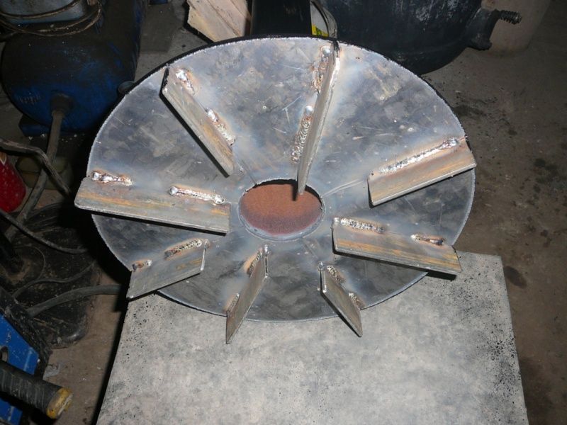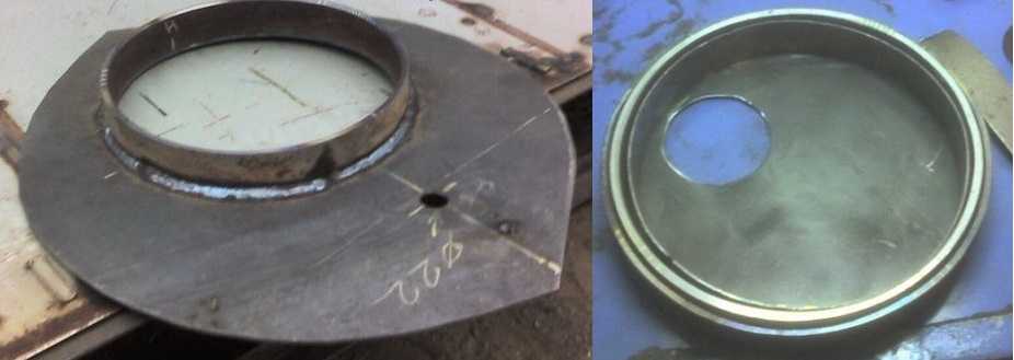 - Направете отвор в центъра на кръга с диаметъра на тръбата на въздуховода, след което го заварете към диска.