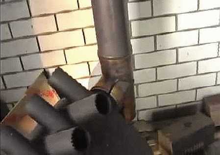 - В пробитите отвори в задната стена поставете и заварете тънки метални тръби. Оптималната дължина на всяка тръба е 15 см. Тези части са необходими за осигуряване на вторичен всмукателен въздух.