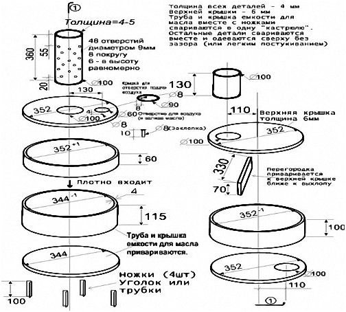 - Заваряване на вътрешни прегради (на височина 6 и 12 см от капака).