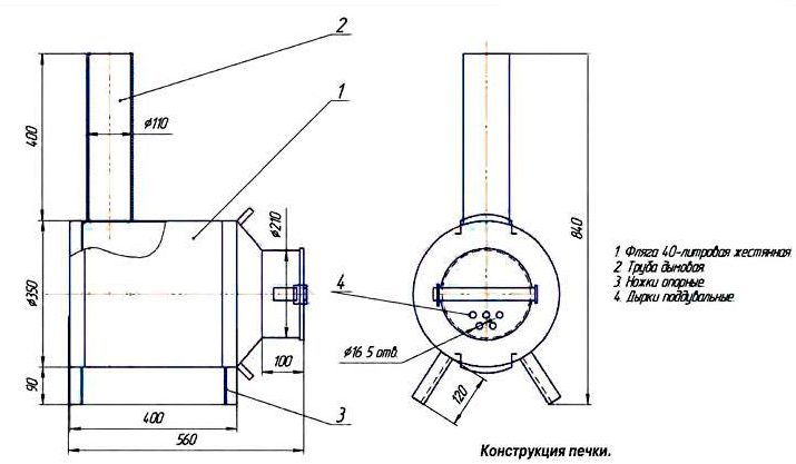 Трябва да се отбележи, че основата на печката, изработена от ламарина, трябва да бъде направена от негорим материал.