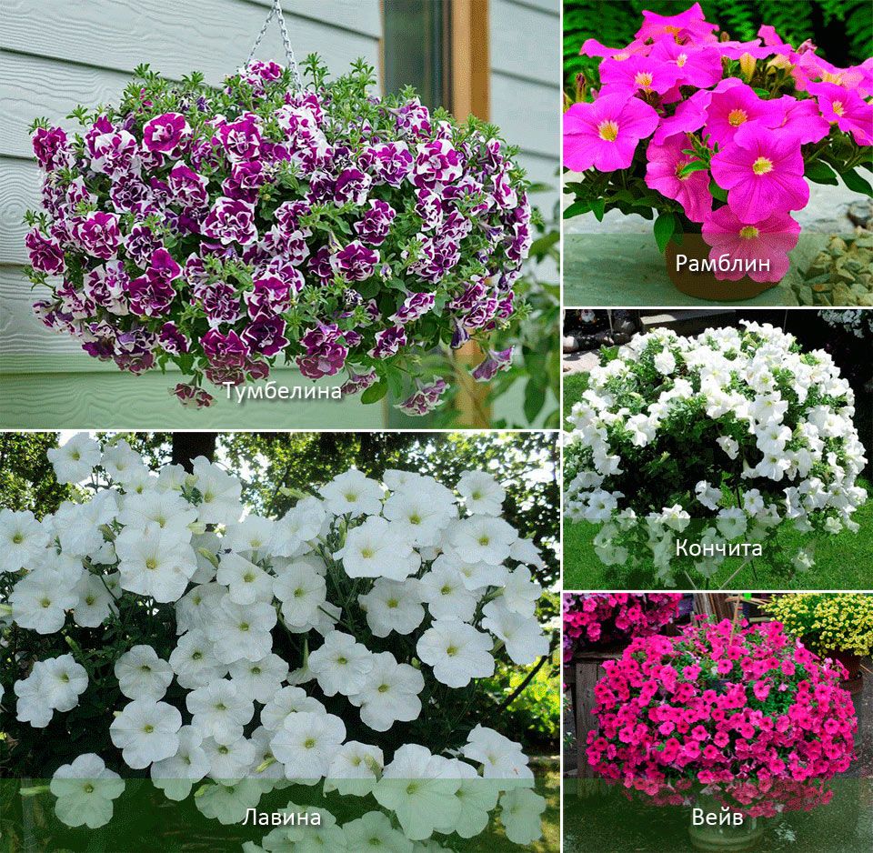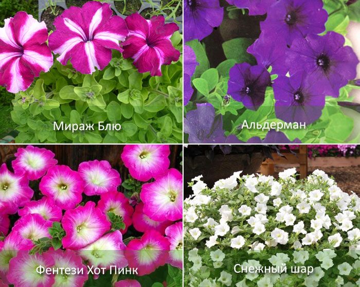 Петуниите се класифицират по височина. Храстите варират от ниски (не повече от 30 см) до високи (30-70 см). Цветовете могат да варират: виолетово, лилаво, бяло, розово, бледочервено и синьо. Цветовете могат да бъдат украсени с тъмни жилки и ярка рамка с различен оттенък.