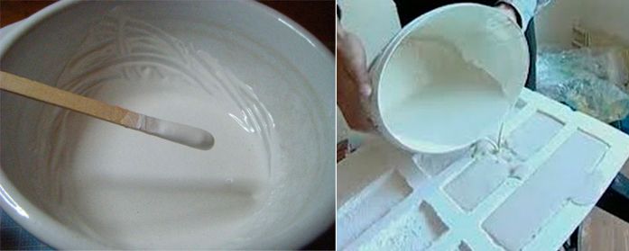 - Смесете гипса с вода (6 до 10 части). След смесване добавете 1 част гасена вар. Това ще направи сместа по-гъвкава, а скулптурите ще бъдат по-твърди и по-здрави след изсъхване.