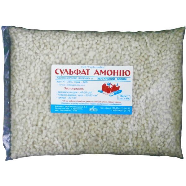 (NH₄)₂SO₄ – съдържа азот и сяра, основни елементи за всяко растение. Характеризира се с оптимално съотношение на полезни компоненти. Подобно на други азотни торове, се препоръчва за употреба по време на интензивен растеж на пъпеши.