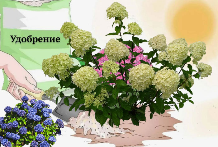 Важно е да се има предвид, че някои формулировки могат да променят цвета на хортензиите в син след употреба.
